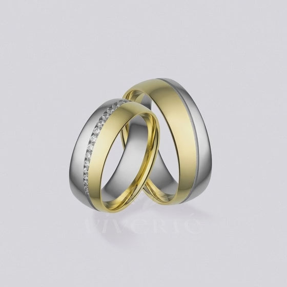 A Glissara arany karikagyűrű pár női gyűrűjének szélessége 7 mm és 25 darab csillogó kő díszíti. A férfi karikagyűrű 7 mm széles, felülete fényes. Belsejük enyhén domború a kényelmesebb viselet érdekében. Rendelhető 14 karátos sárga, fehér vagy rosé aranyból.