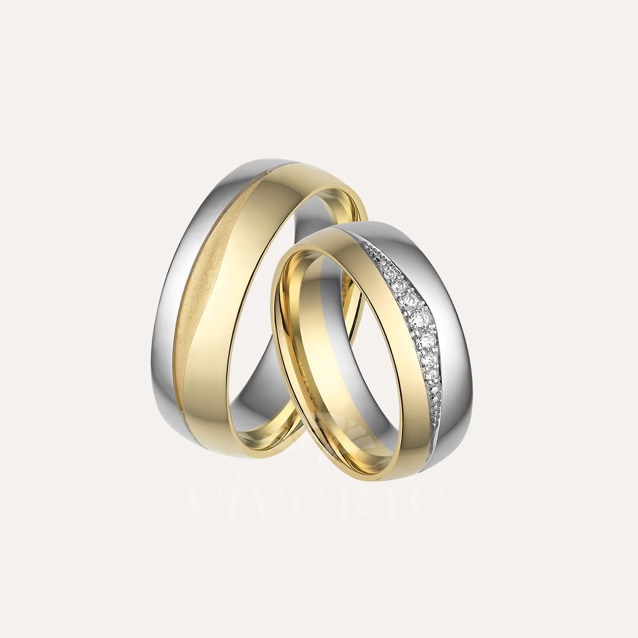 A Crestelle arany karikagyűrű pár női gyűrűjének szélessége 7 mm és 7 darab csillogó kő díszíti. A férfi karikagyűrű 7 mm széles, felülete fényes. Belsejük enyhén domború a kényelmesebb viselet érdekében. Rendelhető 14 karátos sárga, fehér vagy rosé aranyból.