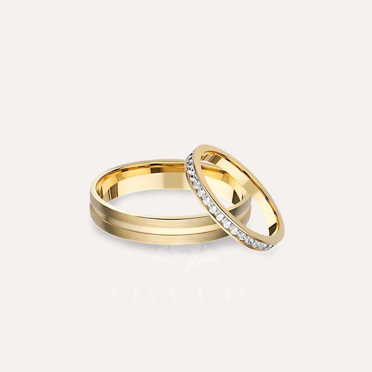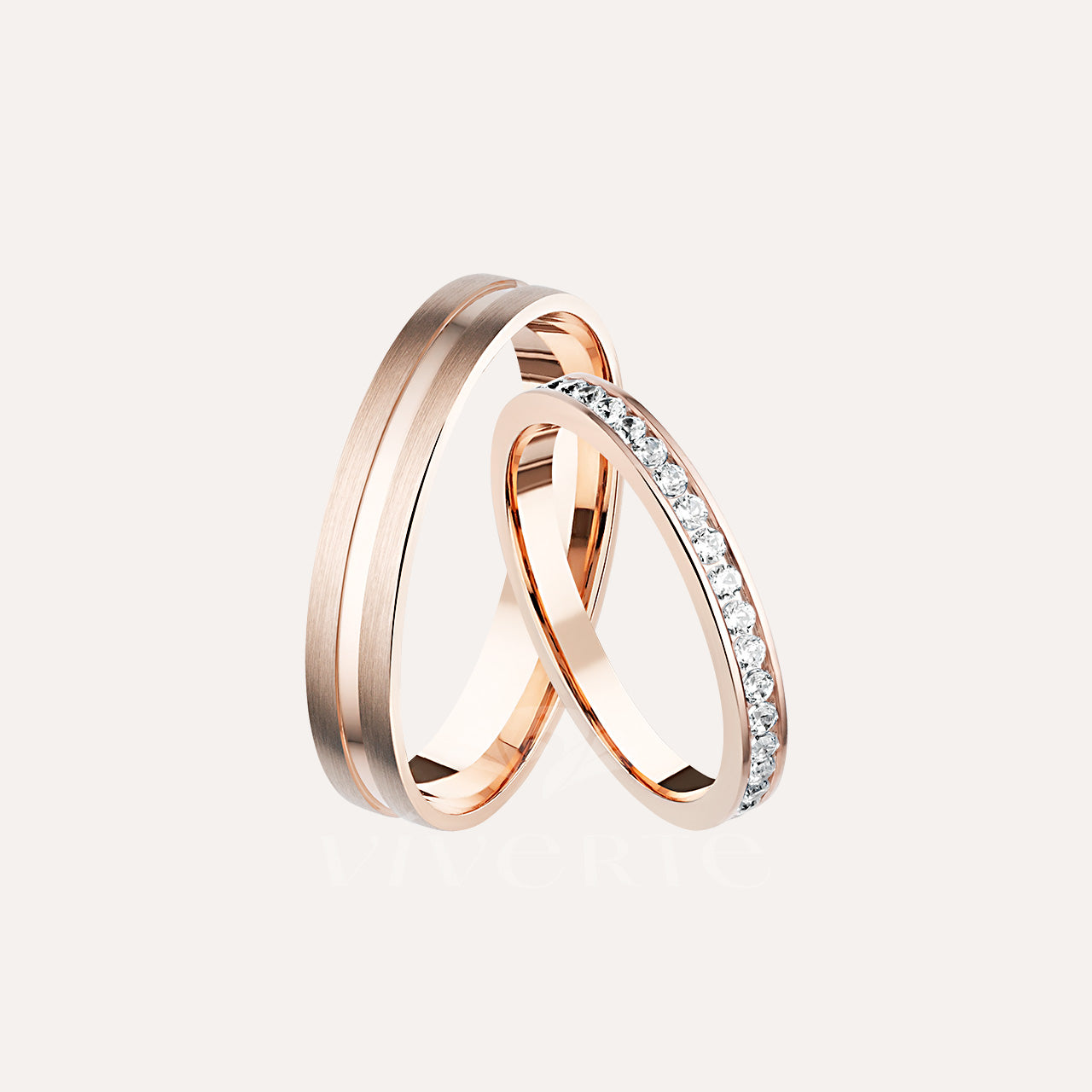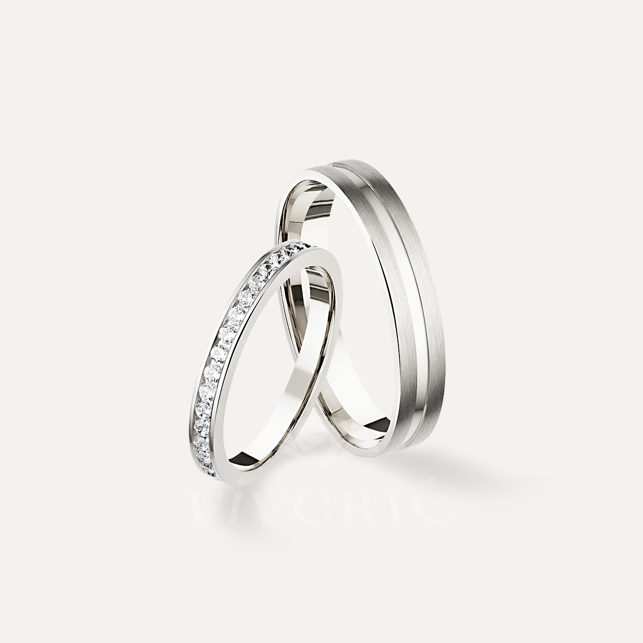A Nivora arany karikagyűrű pár női gyűrűjének szélessége 2,2 mm és 17 darab csillogó kő díszíti. A férfi karikagyűrű 4 mm széles, felülete fényes. Belsejük enyhén domború a kényelmesebb viselet érdekében. Rendelhető 14 karátos sárga, fehér vagy rosé aranyból.