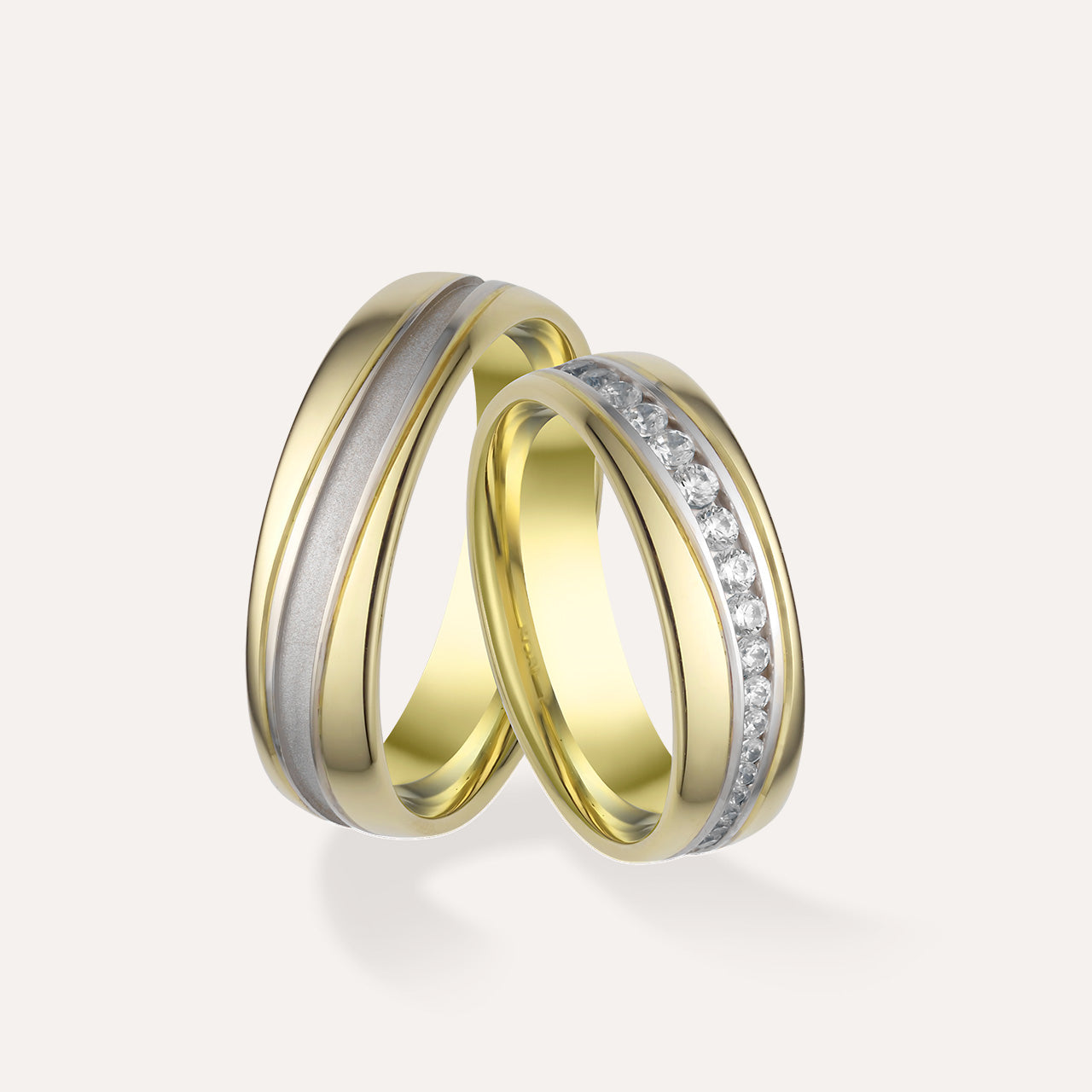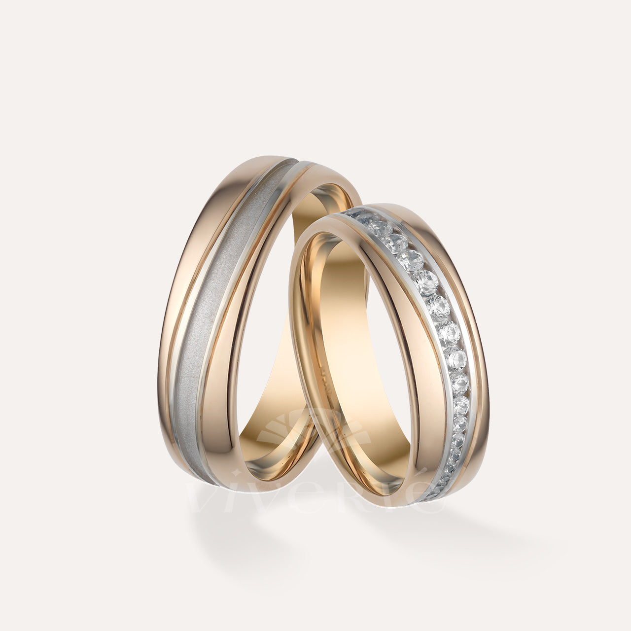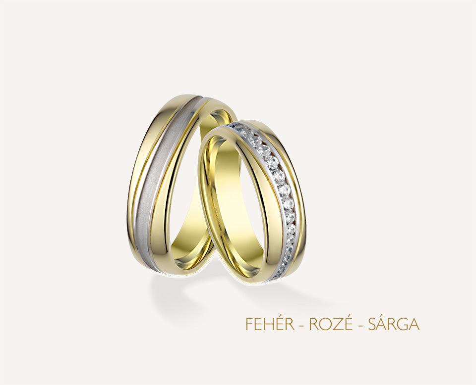 A Sunlume arany karikagyűrű pár női gyűrűjének szélessége 6 mm és 40 darab csillogó kő díszíti. A férfi karikagyűrű 6 mm széles, felülete fényes. Belsejük enyhén domború a kényelmesebb viselet érdekében. Rendelhető 14 karátos sárga, fehér vagy rosé aranyból.