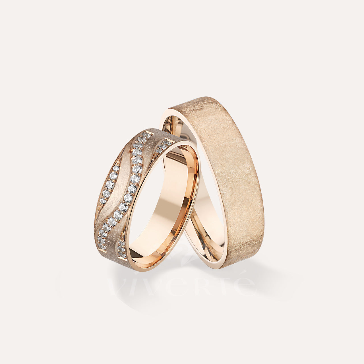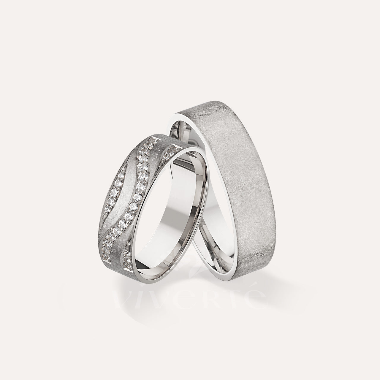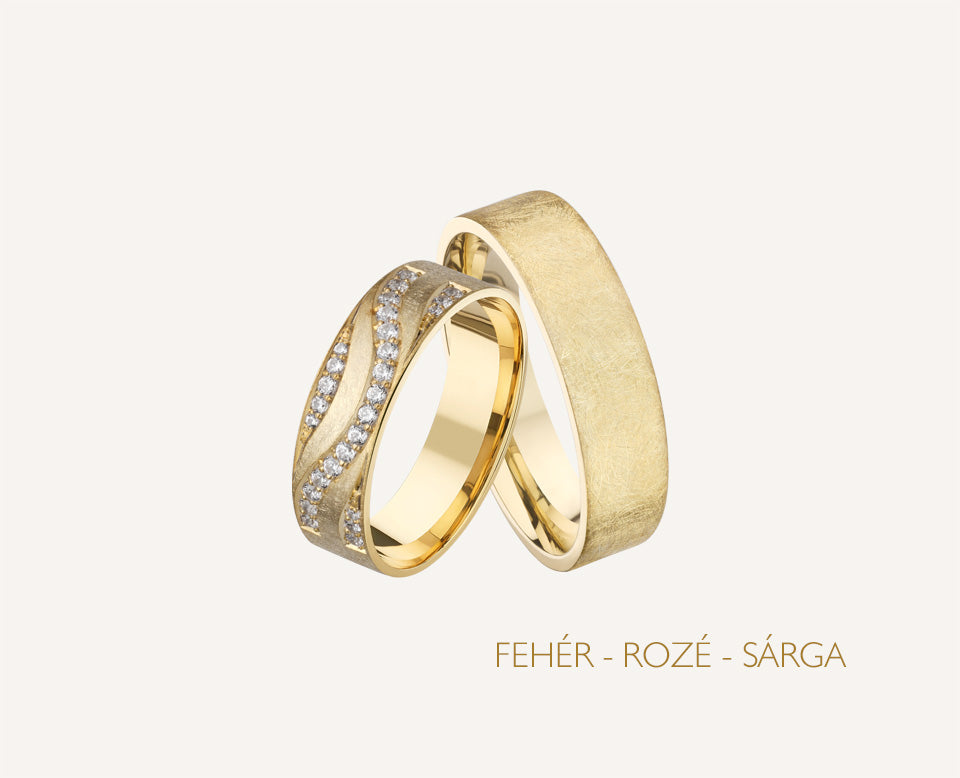 A Brightwave karikagyűrű pár női gyűrűjének szélessége 6 mm és 27 darab csillogó kő díszíti. A férfi karikagyűrű 6 mm széles, felülete fényes. Belsejük enyhén domború a kényelmesebb viselet érdekében. Rendelhető 14 karátos sárga, fehér vagy rosé aranyból.