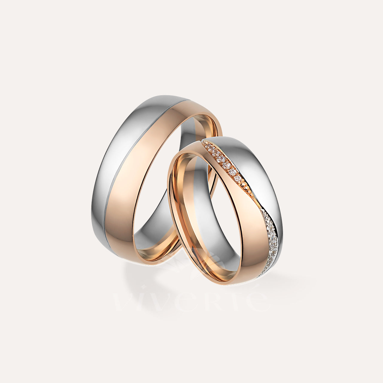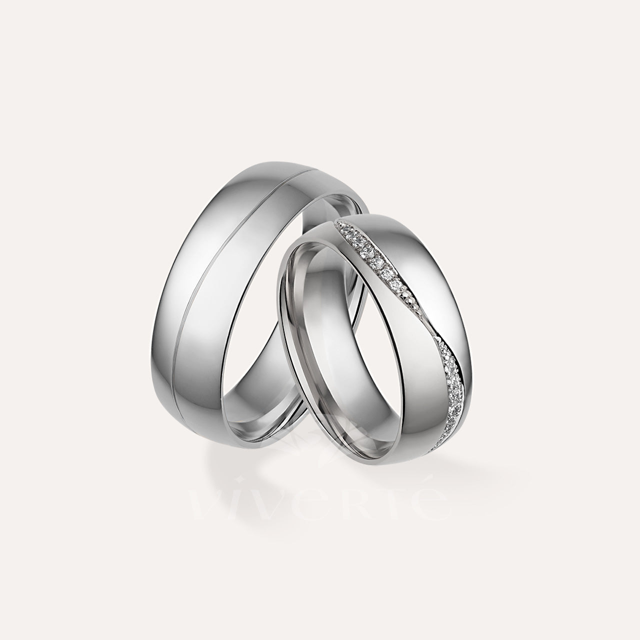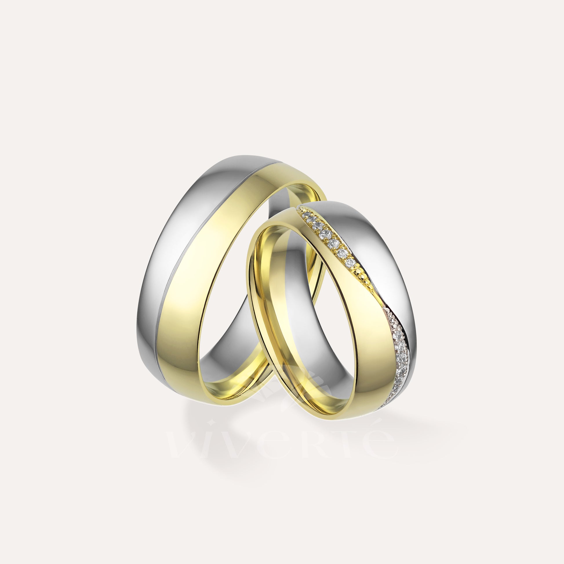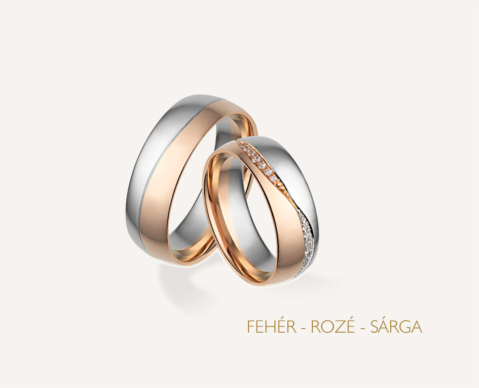 A Twilume arany karikagyűrű pár női gyűrűjének szélessége 6 mm és 28 darab csillogó kő díszíti. A férfi karikagyűrű 7 mm széles, felülete fényes. Belsejük enyhén domború a kényelmesebb viselet érdekében. Rendelhető 14 karátos sárga, fehér vagy rosé aranyból.